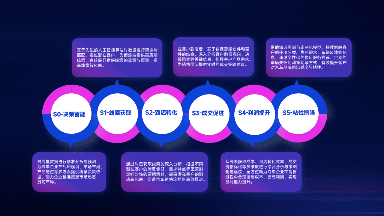 通过拓宽潜在客户来源、、、、优化线索分配并提高到店转化率,,以增强销售效率。。同时,,利用线索数据不断优化分析模型,,,有效提升转化率,,,扩大营销影响力。。。
